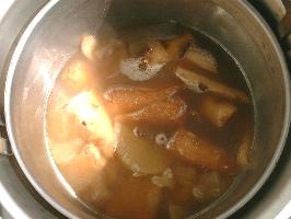 | 私はお約束通りおでんを持って行かせていただきました。 数年前に何かのお返しでいただいてそのままタンスの上に 乗せてあった「魔法瓶鍋」を使ってみましたが、 あれはいいですね〜優れものです。 おでんのネタを入れて15分くらい炊いたら 後はそのまま保温しておくだけでしっかり煮込めていました。 びっくり!! |